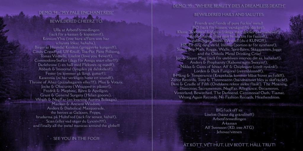 Hammerheart Records hörde av sig till Soulmirror och ville återsläppa Bewildereds två gamla demos på en deluxeutgåva. Dubbelvinyl med snygg gatefold och hela köret. Dock tog de hjälp av Adipocere Records för att finansiera paketet. När ryktet om denna kulturgärning spred sig i underjordern blev Cosmic Key Creations oerhört intresserade av att släppa en kassettbox med samma demos, bägge fullängdarna, samt tre livekassetter med nedanstående gig: