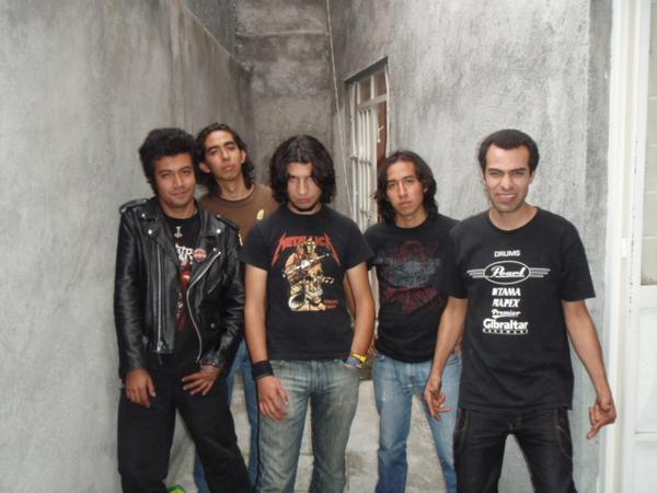 Döper man sitt band till DOLMEN verkar det föreligga en hundraprocentig chans att bandfotot blir katastrofalt. Här valde mexikanerna att ta en gruppbild i den trångaste gränden de kunde finna i den lilla staden Morelia som de härstammar ifrån. Detta innebar att den flinande mannen med Beverly Hills-frisyr till vänster ser ut som han fått en hockeytackling av ett osynligt spöke. Upptryckt mot väggen pillar han sig lite förstrött i ljumsken medan han väntar på att denna dag mest bara ska ta slut. Bakom den tacklade snubben finner vi tredjepristagaren i tävlingen Årets Maffigaste Adamsäpple. Ett distingerat evenemang där man vinner både diplom och en fin pokal. De flesta är dock med för ärans skull. METALLICA-killen med MACHINE HEAD-utseende är uppenbart DOLMENs officiella hunk. Genom att titta under lugg och avlossa ett spjuveraktigt leende får han damerna på fall. Nummer fyra i denna brokiga skara finns det inte så mycket att orda om. En klassisk mexikan i blåjeans och T-shirt. Nummer fem däremot. Jösses. Antingen har han inte lärt sig hur man gör djävulstecknet med fingrarna eller så räknar han på fingrarna hur många timmar det går på ett dygn. Snubben spelar garanterat trummor. Det är nämligen bara trummisar som utan skam ikläder sig plagg som är fullsmetade med trummärken. Ett uttalande jag kan sätta min BURZUM-samling på. Har ni någonsin sett en sångare med en tröja det står ”Shure” på? Nej. Har ni någonsin sett en syntare som burit shorts det stått ”Korg” på? Nej. Har ni någonsin sett gitarrister eller basister som… vänta, jag tar tillbaka det där. Strängspelare är även de totalt oblyga över att ta på sig dåligt sittande reklamkläder. Trummisar är dock värst.