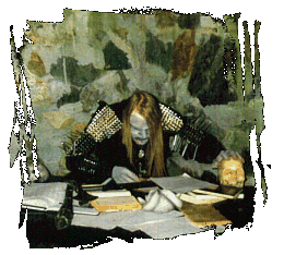 Först och främst: vad är det egentligen han sitter och jobbar med? Och varför har karln inte sett till att skaffa en fungerande lampa? Alla som jobbat med någon form av pappersexercis vet att det är att be om spränghuvudvärk att sitta och försöka läsa finstilt i dokument som uppenbarligen har en pikant doft av mögel utan att vara utrustad med vettig belysning. Möjligen kan jag tänka mig att ett alltför starkt lysrör tidigare ställt till det för den gode Heks, då skenet verkar ha varit av skadlig UV-karaktär. Hur förklarar man annars att halva chipspannan fått en solariebehandling medan resten av ansiktet antagit samma färg som en KOL-sjuk man i sina sämsta år? Sjukt oergonomisk stol verkar han skaffat sig, också.