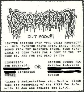 I början var det helt klart death metal (första demon är ju typisk för tidsandan). Sen kallade vi oss alltid death metal, det var andra som ville ge oss andra epitet. Jag tror att jag har hört 3-4 olika benämningar. Det slutade med att det blev death/black för att vi inte orkade att rätta folk. Men, Dissection är för mig death metal.