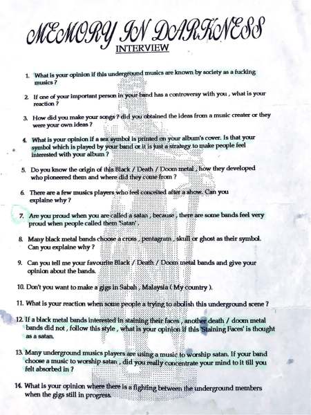 Något jag fullkomligt älskar är att svara på bisarra intervjuer från fjärran länder. Intervjuer där petitesser såsom språkkunskap och rimlighet får ge vika för de riktigt tunga spörsmålen. Det är där man hittar sanningen. På väg hem från jobbet igår plingade det till i min mobiltelefon. Herr Stille hade skickat en bild. Jag klickade på meddelandet och mina ögon möttes av magi. Genom pur ockultism hade herr Stille tillskansat sig intervjufrågor från det malaysiska fanzinet Memory In Darkness. Vilket band som ursprungligen fick de här frågorna är oklart, men för att hylla den här typen av journalistik tänkte jag svara på den. Mestönten Proust hade sina tjugo frågor. Här är mina.