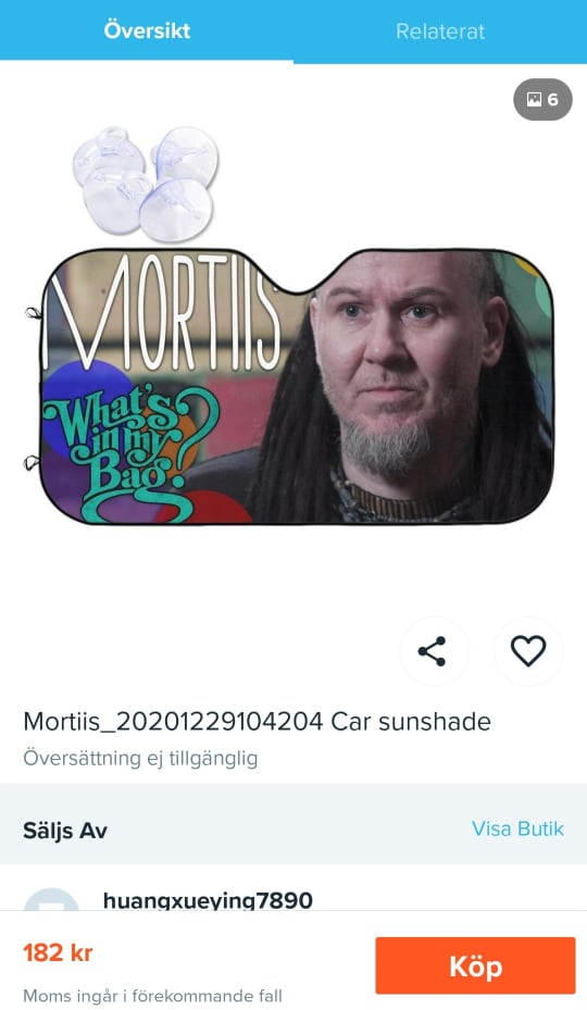 Mortiis-solskydd. Till bilen. Och det slutar inte där. Nördarna på WISH tog thumbnailen till avsnittet av What´s in my bag som Mortiis medverkade i och pangade upp DET som merch.