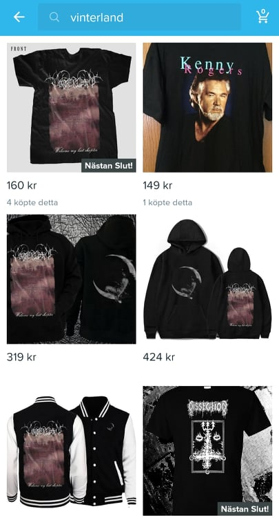 Nästa dag öppnade jag WISH-appen i telefonen för första gången på flera år. Jag blev nyfiken på vad som faktiskt dyker upp om man söker på ”Gandalf”. Tyvärr inget spektakulärt. WISH är som vi alla vet den kinesiska motsvarigheten till Jotex-katalogen. Det är bara skit. Jag antar att vi alla fallit i fällan någon gång och beställt något. För att sedan få paketet och ångra hela beslutet. Kvalitén är bedrövlig, ofta fungerar prylen inte alls och storleken på varan är alltid mindre än förväntat. Ur ett miljöperspektiv är det bättre för naturen att kasta bilbatterier på korallrev än att beställa något från WISH. Ändå beställer folk därifrån fler än en gång. Jag antar att köpfesten kanske är ångestdämpande eller något. Gå på loppis istället. Sedan kan man lugnt säga att på WISH råder en hyfsat nonchalant inställning till saker som upphovsrätt.