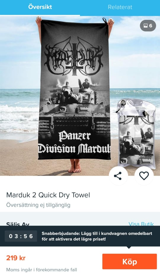 För typ 5 år sedan beställde jag en Katharsis-tisha från Wish med Fourth reich motivet. Vansinnigt såklart men den kostade typ 75 kr plus att detta var innan postnords frakthysteri.