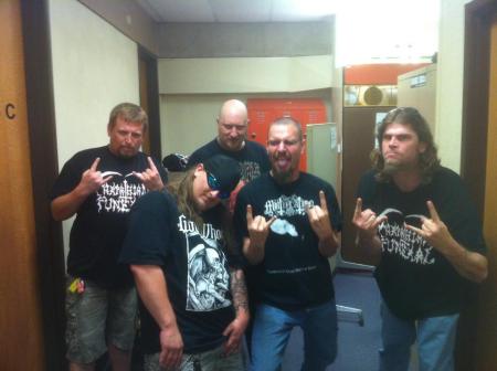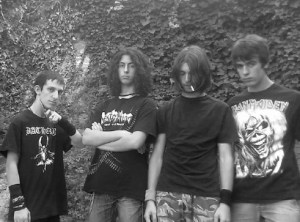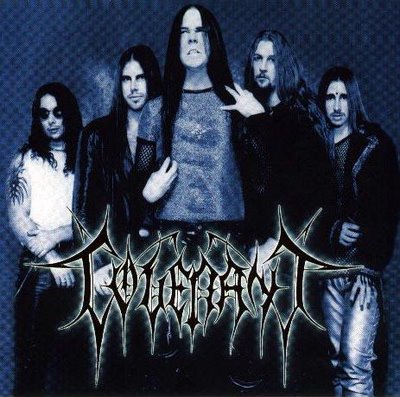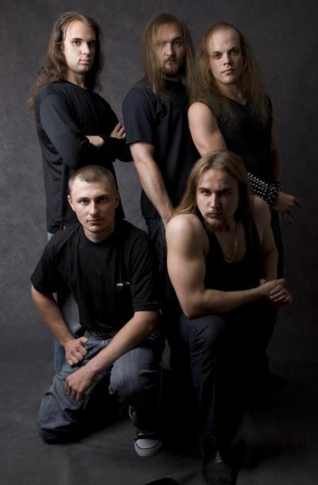 Gruppbild nummer två bjuder på en överlycklig Ezpharess som klämkäckt sätter upp foten på ett tjusigt balkongräcke. Långt ifrån en bra insats men i jämförelse med vad som hände Aaarrrgon framstår Ezpharess som ett fotogeniskt geni. Tack vare Aaarrrgons supersnäva lederhosen klev han rejält snett när detta fotografi togs. Vad vi inte fick se var när Aaarrrgon störtade likt ett övermoget päron utför balkongen. Han måste haft änglavakt för han bröt inga ben, dessvärre fastnade hans krulliga hår i balkongräcket och när hans blekfeta lekamen slog i marken såg han ut som frontmannen i KHOLD i barret . Tror ni mig inte kan ni spana in Aaarrrgons enskilda foto igen där han mycket riktigt är kal som ett ägg. Mitt rättstavningsprogram håller förresten på att kollapsa efter alla gånger jag skrivit ”Aaarrrgon” så detta är näst sista gången jag skriver det.