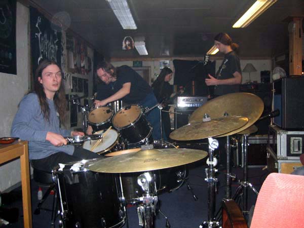 HP: Det finns ju ett stående skämt om att black metal-sångare är för jävliga att ha att göra med. Att de aldrig kommer till repen. Och hej och hå … anledningen till det är ju för att resten av bandet står och lattjar och spelar sådant här skit, hela repet igenom. LÄGG AV.